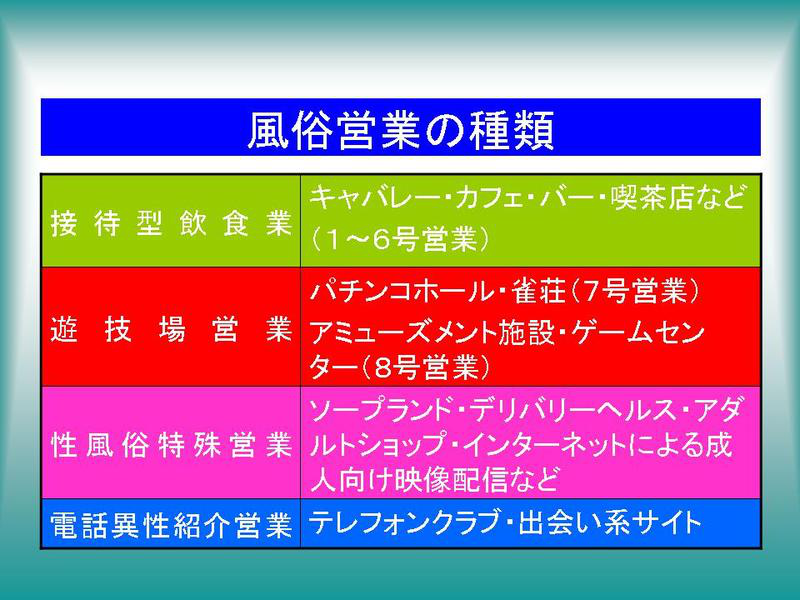有店铺的类型又能分为6种营业方式。这些店就不再只是陪喝酒聊天那么简单的服务,而会提供各样尺度不同的服务,只要办理了相关手续,就能大大方方开门营业。