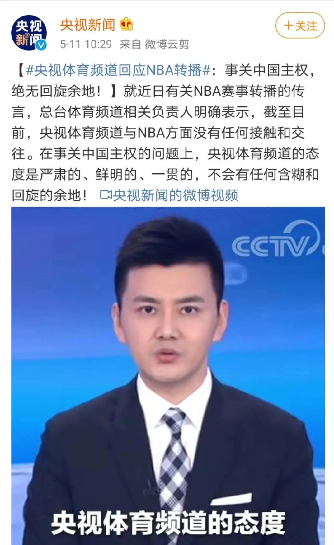 5月11日上午,央视强硬回应:与NBA没有任何接触交往,没有任何复播打算。