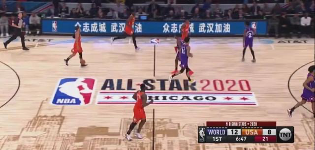 尽管在全明星赛的舞台上,NBA卖力的在为武汉加油。