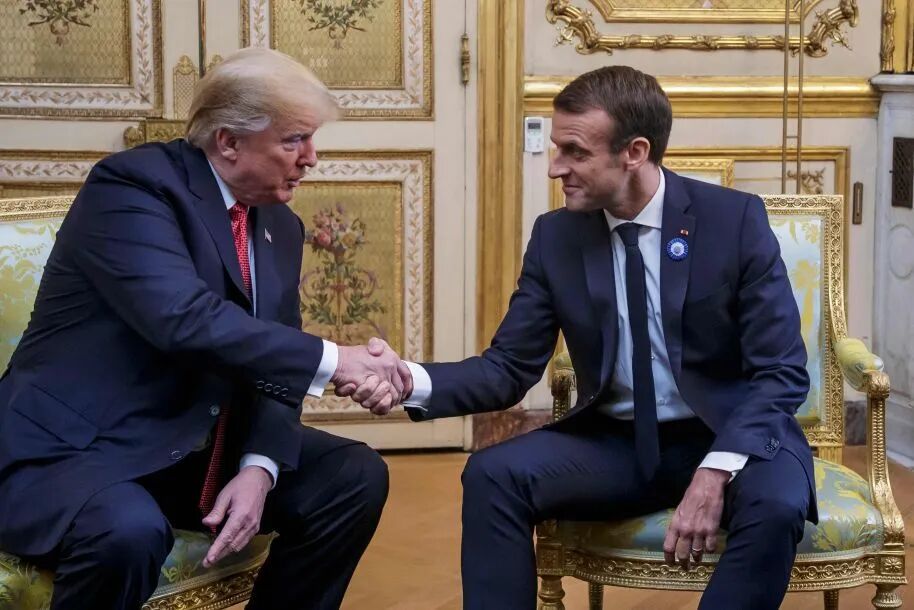 美国总统特朗普与法国总统马克龙握手(资料图)