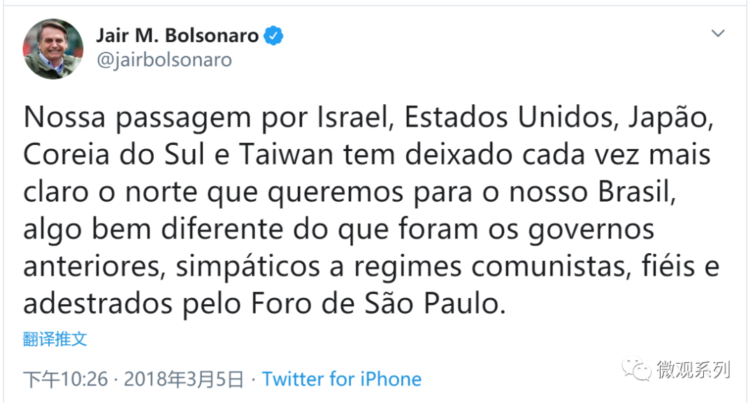 “博索纳罗”上台后的中巴关系非常诡异,博索纳罗上台前是“反华”的