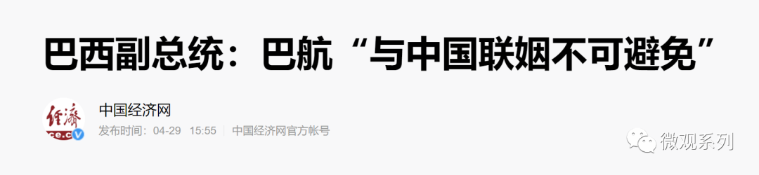 就在上个月,这位副总统还提出,巴西航空业需要复苏,就必须与中国联姻