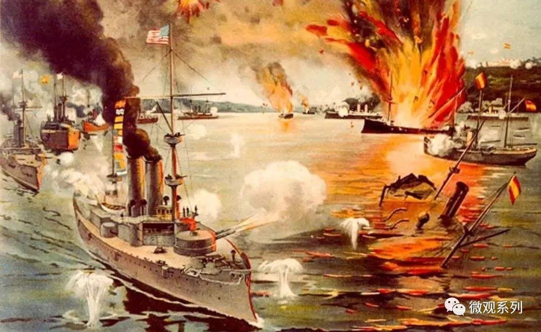 随后美军封锁古巴港口,西班牙向美国宣战,美国次日也宣战西班牙,美西战争爆发