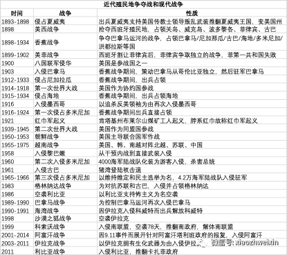 英法7年战争当然是表现为争夺殖民地的战争,延伸到美洲就是1754-1763的美洲殖民地争夺战,法国战败。通过第一次巴黎和约,法国割让了北美全部的殖民地。英国成功占领几乎整个北美。法国虽战败,可心里当然不服气。于是鼓动英殖民地的那些英国移民起来造反。殖民地当然有很多不太服从英国统治的刺儿头,尤其是那些正在绕开英政府从中国和印度搞走私贸易的走私犯们。双方一拍即合,这就有了所谓的独立战争。标志事件是走私犯们鼓动新格兰移民抢掠英国东印度公司的商船,将其茶叶倒入大海,上演了所谓“倾茶事件”,引发所谓独立战争。注意,那些所谓的美国开国先贤们,当初其实都是走私犯。所谓独立战争的本质,不应该叫独立战争,而应该叫分裂战争。如果是印度这样的英殖民地从英国统治下独立,这当然叫独立战争。可美国是英国自己的移民想从自己的祖国分裂出去,这怎么能叫独立战争呢?只能叫分裂战争。美国从英国分裂出去后,发生的战争可比英国多太多了。不仅对印第安人是无休止的杀戮和抢夺,对英国还占着的北美地盘也是不断地抢夺,对西班牙的地盘也丝毫没有客气。下表是美国从英殖民地分裂出去后,直至1890年的大约100年时间里发生的主要战争统计。一是美法战争。法国是美国独立战争的武器和资金援助者,可以说,凭当时英国的实力,没有法国的背后支持,美国独立几无可能。可是,法国因为同英国的7年战争以及支持美国独立战争而耗空了国库,导致国内民怨四起,在英国的撺掇下也发生了内乱,爆发了法国大革命(1789)。此时,当大力支持和援助了美国独立战争的路易十六向美国求援时,美国却充耳不闻,眼睁睁看着法王被送上断头台。新上台的法国政府向美国追债,美国同样拒绝还钱,理由居然是只向法王借过钱,没向新的法兰西共和国借过钱。于是双方也打了一仗。法国内乱不断,不能久战,让美国既赖掉了债务,又赢了战争。所谓第二次独立战争更有趣。分明是美国从英国分裂出去了,占了英国15个州的地盘,这美国人还不满意,趁英国忙于亚洲事务,在北美地区(加拿大地区)驻军少,又跑去抢英国人的地盘。结果英国人在加拿大民兵和印第安人的帮助下把美国人给打败了,最终总算是守住了今天加拿大那一块地儿。这印第安人为什么要帮助统治他们的英国而不帮助美国呢?原因就是英国对印第安人比美国人要好点。这种抢掠战争,居然会被称为“第二次独立战争”,有意思吧?美国人撒流氓是有历史的,可别小看了。所谓南北战争当然更有趣,只是我过去讲过很多次,在这就不多啰嗦了。简单点说,南北战争的实质是:流氓为夺取政治权力,扛起道德大旗,干了违背宪法的勾当,悍然发动了不义战争,最后居然还成了民族英雄式的伟大总统。要知道,在当时,蓄奴制度和公投独立都是受宪法保护的,南方各州并没有什么错。林肯代表北方工业基地的新兴资产阶级利益,想要抢夺南方的黑人劳动力,以解决工业劳动力严重不足的问题。扛着自由和人权的道德大旗,悍然发动内战,导致人口死亡超过5%,林肯其实犯下了滔天大罪。何况,林肯扛着反蓄奴的大旗,自己家里却也蓄有黑奴,这种为政治权力而不择手段的伪君子居然成了美国历史上最伟大的总统之一,实在就是一个笑话。美国历史上也曾入侵过台湾和朝鲜的,这一点估计很多人都不知道。至于美国入侵墨西哥,抢掠了墨西哥一半国土,成为了今天美国西南7大州,包括最富裕的加州,这点历史想必大家都知道的。千万别再说美国不曾侵占别人一寸土地了,历史事实可不是这样的。今天美国的大部分土地可都是侵占的。这里还不是全部,往后的历史中,还在继续侵占,我们往下看就知道了。至于美国独立后血腥而残酷地抢掠印第安人土地,屠杀印第安人的战争历史,上面其实也并非全部,只是很小一部分。因为太多,罄竹难书,我就不去罗列了。大家注意一个有趣的现象,今天我们耳熟能详的许多名词,比如阿帕奇、切诺基、纳瓦霍等,其实都是曾经被美国人消灭的印第安部落名称。美国人不忘历史,永远记得炫耀他们攻城掠地的伟大功勋。只不过,就如同“感恩节”的故事一样,他们的伟大里永远要将印第安人踩在脚下。他们记得“五月花号”到达普利茅茨后,饥寒交迫中曾经受到过印第安人的救助,终于有人存活了下来。但是,他们要通过“感恩节”来感恩上帝派人给他们送来了火鸡,而不是感恩印第安人送来了火鸡。这就是伟大的美国人,伟大的盎格鲁-撒克逊人。03