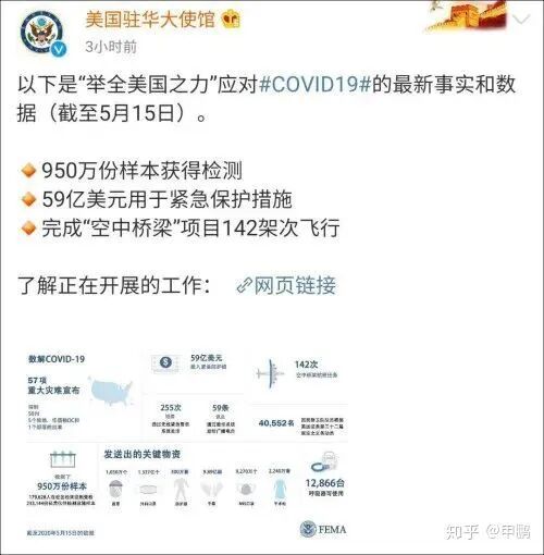 同时美国大使馆的官方微博还在中国社交媒体火力全开,宣传自己家的英雄事迹、伟大功业。五个月了,全美国检测了950万份样本,果然是举国之力。