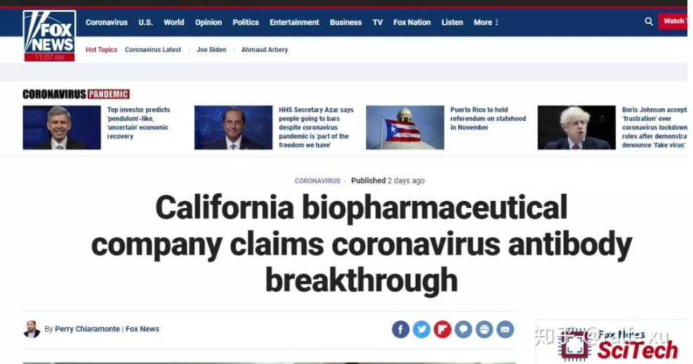 美利坚科技领先宇宙一万年,这不,刚刚又出了一个好消息,据福克斯新闻报道,加州圣地亚哥生物制药公司Sorrento Therapeutics公司在周五宣布他们发现的STI-1499抗体,该抗体可以“100%抑制”新冠病毒,保护人体免受新冠病毒感染,并在4天内将病毒从人体系统中清除。