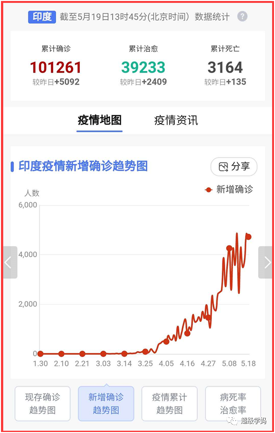 5月19日,对印度来说是一个特别的日子,确诊人数突破了十万人,关键是还在快速增长。