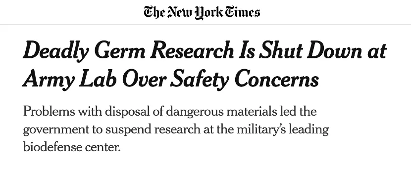 其一,德特里克堡基地泄漏病毒,早有先例。