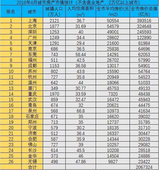 有人把中国前26个城市的市值,按照官方公布的人均住房面积和全市均价简单的计算了一下,发现是206万亿元。