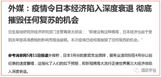 比如日本,第一季度负增长,第二季度可能更惨。加上2019年四季度也是负增长,日本经济年度衰退可能达到10~20%。
