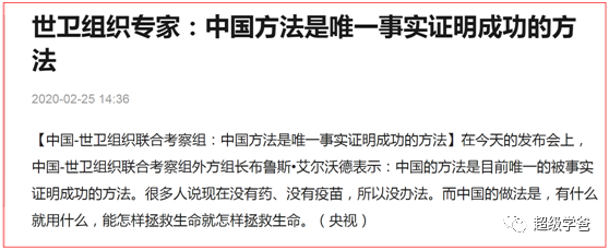 为什么世卫组织站在中国这一边?因为只有中国的战疫模式是唯一被事实证明成功的模式,外国专家还说,如果他被感染了,他希望在中国得到治疗。