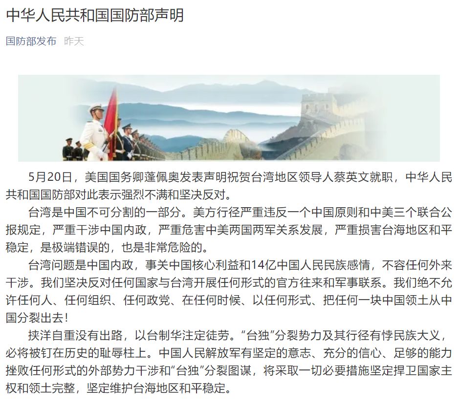 面对这种触碰红线的挑衅,中国外交部、国防部和国台办罕见同日三连击,狠狠怼了回去。