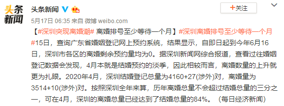 连突现离婚潮,排不上号这种事,深圳都冲上了热搜。