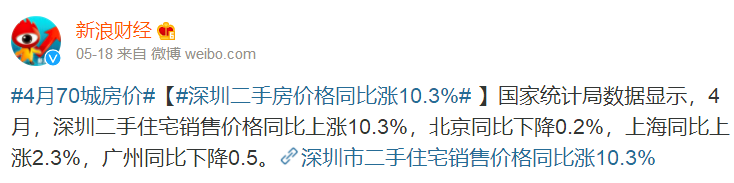 深圳新房、重点区域二手房市场持续火爆,引发热议。而5月18日国家统计局发布《4月份70个大中城市商品住宅销售价格变动情况》,显示深圳同比大涨10.3%,环比上涨0.6%,位列一线城市第一,继续保持3月份以来的惊人涨幅。