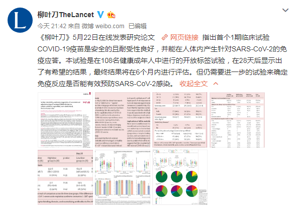 第73届世卫组织年会开完没两天,中国新冠疫苗研究就取得重大突破。5月22日晚间,国际医学最权威的杂志《柳叶刀》在线发表了中国军事科学院陈薇院士领衔的新冠疫苗研究成果,陈薇院士领导的团队开发的新冠疫苗是世界上首批进入临床试验的新冠疫苗,它的一期临床试验结果已经出来了。论文显示,疫苗安全性良好,并在志愿者体内成功产生了抗体。同时作者也谦虚地指出,尽管试验结果显示疫苗具有良好的前景,但还需要进一步对疫苗的有效性和安全性进行论证,现在讨论疫苗上市还为时尚早。