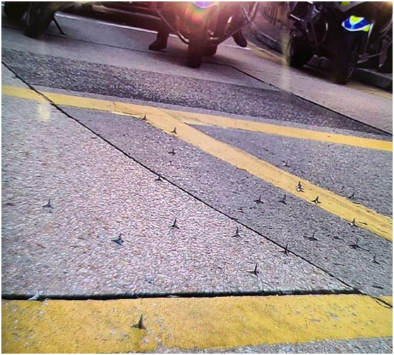 从5点半开始,就有暴徒在将军澳、红磡等多个地区路面上撒铁钉;还有暴徒往葵兴港铁站的列车路轨投掷围栏,阻碍来回轨道;北角、天后、南昌及香港大学等港铁车站还有人把硬物贴在列车门边,阻碍车门无法正常关闭。