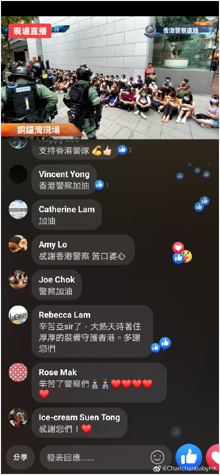 与此同时,有人发现,在昨天香港警方的直播页面下,留言撑警的声音多了,叫骂的少了。