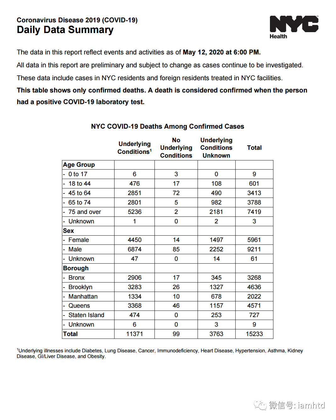 我找不到全美国的数据,只有纽约的部分数据,以下为纽约5月13日死亡人数分布
