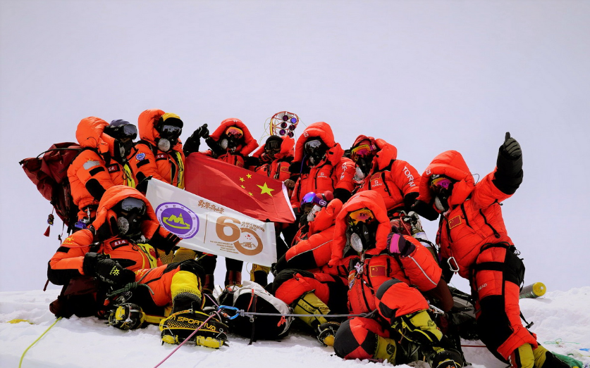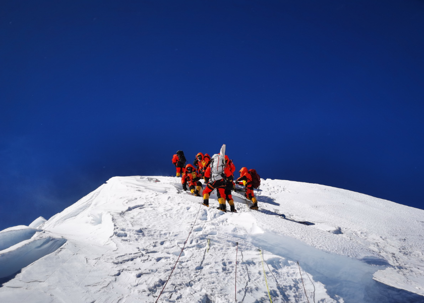2020年5月27日11时整,中国珠峰测量登山队8名队员登顶珠穆朗玛峰