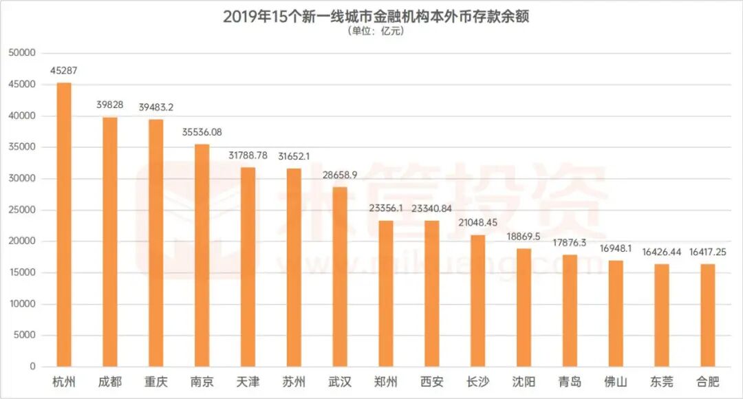 杭州再次高居第一,成都、重庆、南京、天津、苏州紧随其后,六个城市都超过了3万亿元。