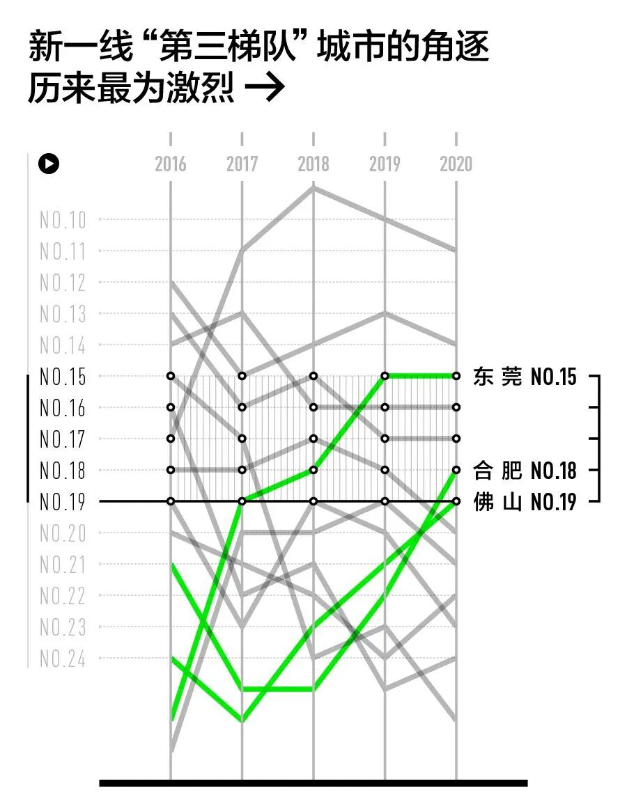 而本次榜单最引人关注的,则是合肥和佛山的入榜。相应的,宁波和昆明,则被挤出新一线。
