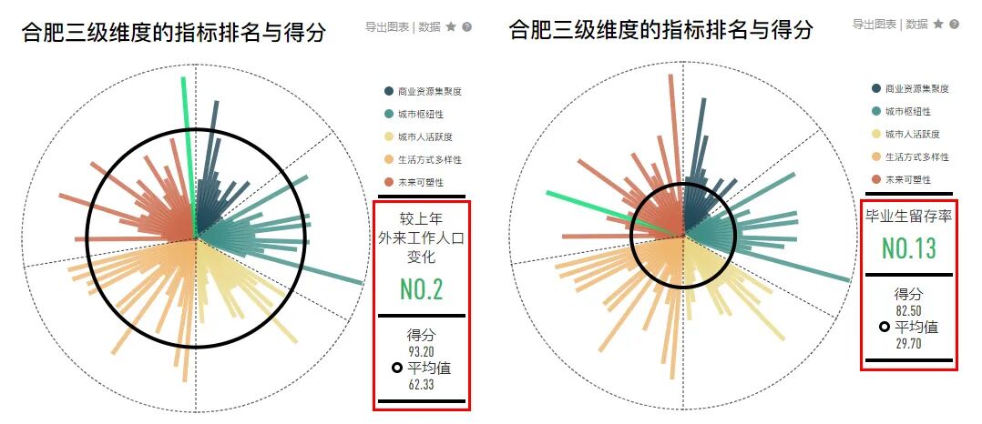 尤其是外来人口较去年的增长指数,在全部城市中排名第二。毕业生留存率的表现,也能排在全国13位。