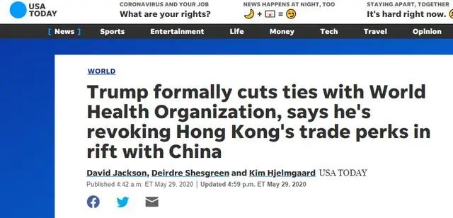 1、退出“被中国控制”的世界卫生组织;