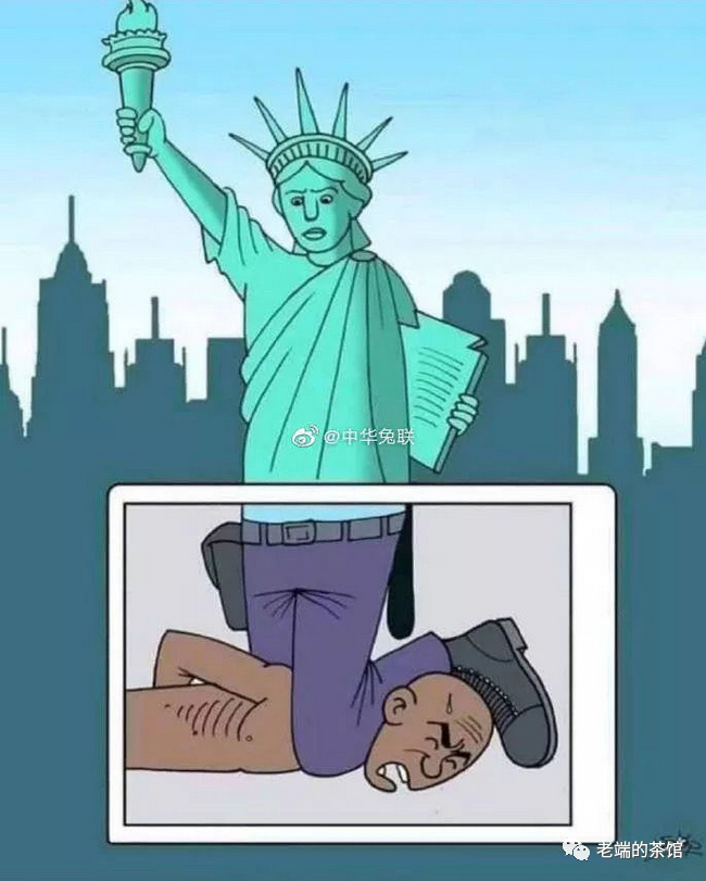 上面这幅图很好的表现了当前的状况,象征美国精神的自由女神,自由的跪在黑人的头颈上,黑人一边喊着妈妈,一边见了上帝。而其他黑人则自由的上街,并且去超级市场自由的淘宝,拿完东西还放一把火烧个干净。下面这张图极富感染力,我认为可以给摄影师发一个奖,就叫自由摄影大奖吧。