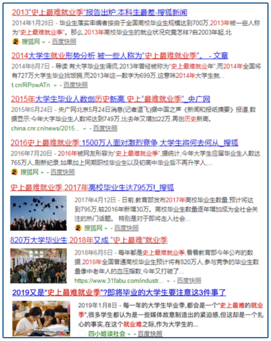好容易读完书,可以上班挣钱了。但从2013年开始,每一年都是“史上最难就业季”,就业难度越来越大: