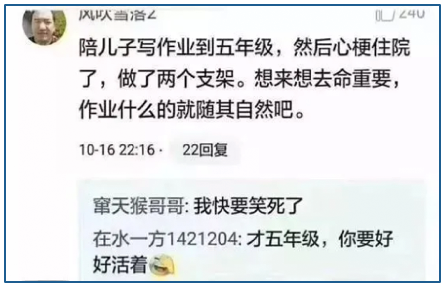 极个别的辅导作业成了生死较量,有的孩子受不了重压选择离开: