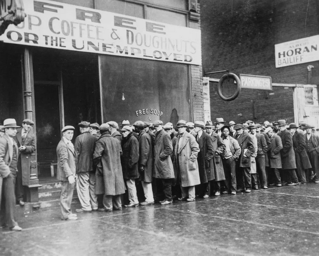 很多很多这样的人,只能拉下脸去寻求救济。有的救济来自民间的互助组织,比如教会、救世军或红十字会。有的来自政府,但公共救济系统在繁荣时期只能负担少数贫困家庭,但失业人员太多,导致救济系统倒闭的情况也有发生。