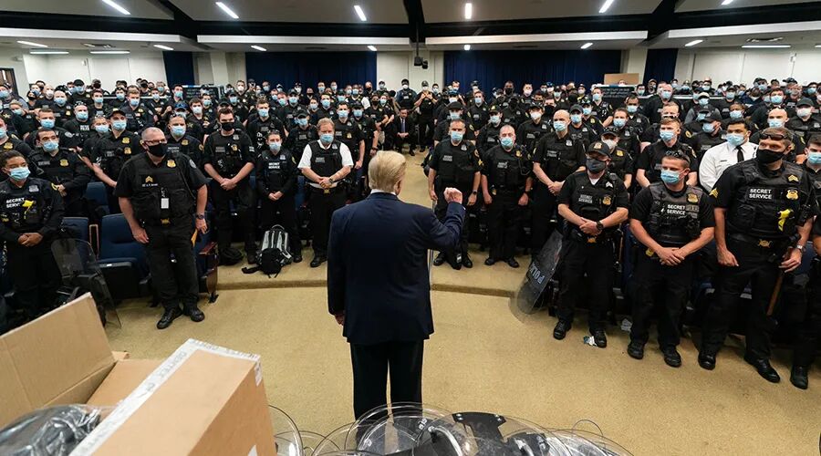 不过这场祈祷背后的故事就不太和谐了,为了能让特朗普在祈祷的路上走出六亲不认的步伐,特工们提前给外面的抗议者们发射了橡皮子弹和催泪瓦斯,把他们赶到特朗普的视线以外,有个专业的词语管这个叫做“清场”。清场工作完成以后,特朗普两口子这才在保镖和特工们的簇拥下走出了白宫,安全抵达圣约翰教堂。