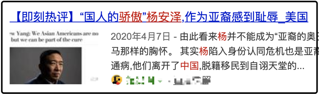在如今全球化的环境下,尤其是西方舆论势力与政治势力的围堵攻击下,我们决不能简单地以“血统”来定性一个人是不是中国同胞,毕竟那些被欧美日精神殖民的人、被敌对势力舆论洗脑的“假洋鬼子”还是不少的。这就好比此前颇受全球华人支持的美籍华人杨安泽,两年前他提出要竞选美国总统的时候,中国的网络上和海外的华文媒体,都是一片喝彩,大家都以为是“自己人”。最早的时候,杨安泽还被很多中国网友说成是“民族之光”,个别跟风的媒体人还称之为“中国的骄傲”。结果人家杨安泽根本就不领情,人家骨子里就认定自己和你中国人不同路的,所以后来大家也看到了,除了发言“针对中国”外,他还公开表示“以华人身份为耻”。