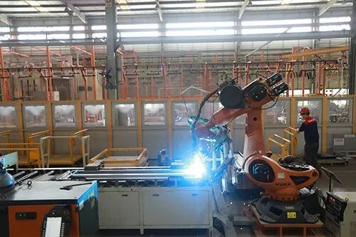 2020年3月2日,广东东莞一家工厂电梯生产车间,自动化电焊设备正在自动生产。