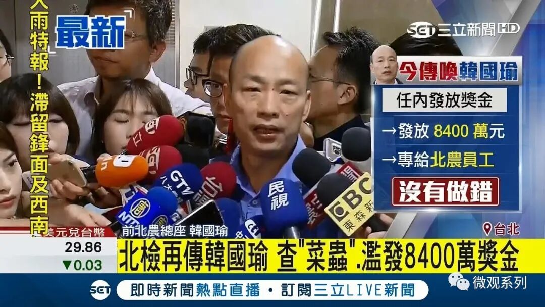 正好那一年台风频繁影响台湾,造成岛内农产品价格大涨,于是民进党就更坐实了韩国瑜是“台湾菜虫”,说他利用台风灾难,故意囤货抬高农产品价格,让台湾百姓的菜越买越贵