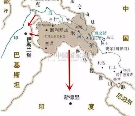 其南面就是南亚次大陆,是印度和巴基斯坦必争之地;从克什米尔向南亚大陆进攻,很快就到巴基斯坦首都伊斯兰堡或印度首都新德里。
