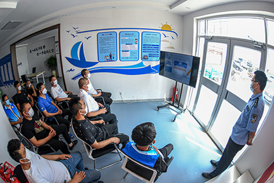2020年6月4日,山东省东营市一处社区活动室为村民播放有关《民法典》专题节目。