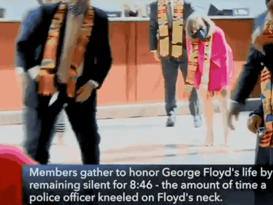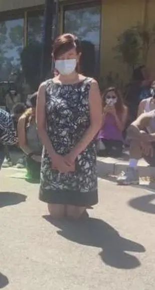 加州费利蒙市的华裔女市长高叙加(Lily Mei),6月2日在现场支持抗议,但没有随抗议者下跪。她的解释是,她只会为信仰而跪,在教堂跪上帝。然而她的这个解释反而成为众矢之的,引来潮水般的批评。4天之后的6月6日,她终于顶不住压力,下跪了,而且是双膝跪地;其他抗议者只是单膝跪地。