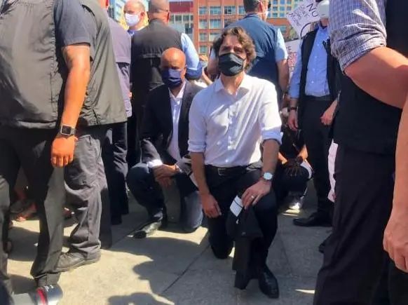 其实最典型的是加拿大总理特鲁多也下跪了。