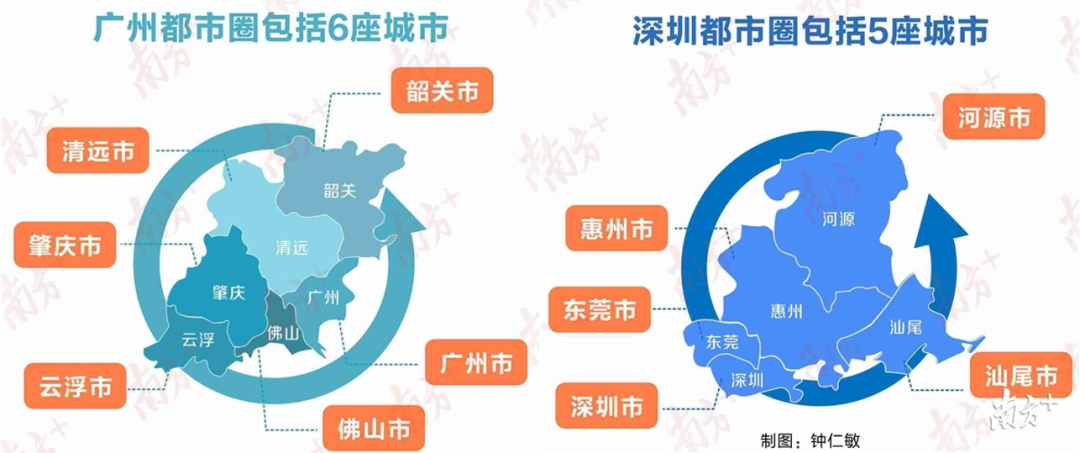 根据此前相关规划和文件,广东这5个都市圈的可能分布范围如下: