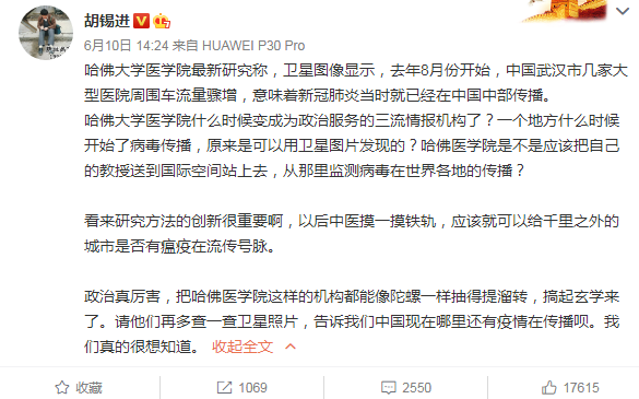 《环球时报》的胡锡进则说得更加不客气,在微博中把哈佛直接给定成了“为政治服务的三流情报机构”: