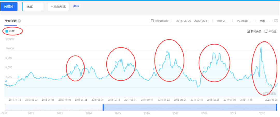 然后哈佛的团队又百度了一下“咳嗽”和“腹泻”的搜索指数,发现在2019年夏末到2019年秋初,这两个指数的搜索量都出现增加。