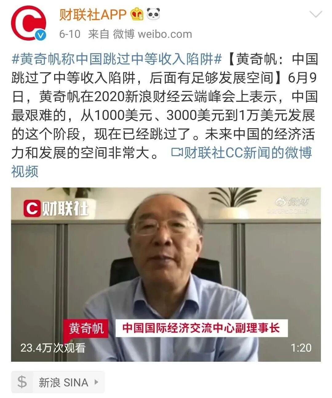 中国现在正好跳过了中等收入陷阱,进入了1万至-3万美元的发展阶段,后面有足够的发展空间。