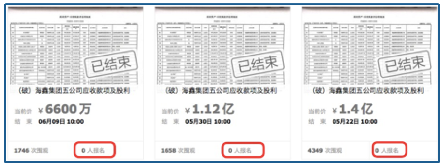 这两天,前山西首富李兆会旗下的海鑫集团的应收账款和股利的资产包,在阿里平台拍卖了,总价值22.35亿,先按照1.4亿评估价拍了一次,4349人围观了拍卖,却没人报名,后来折价到1.12亿,还是没人买。