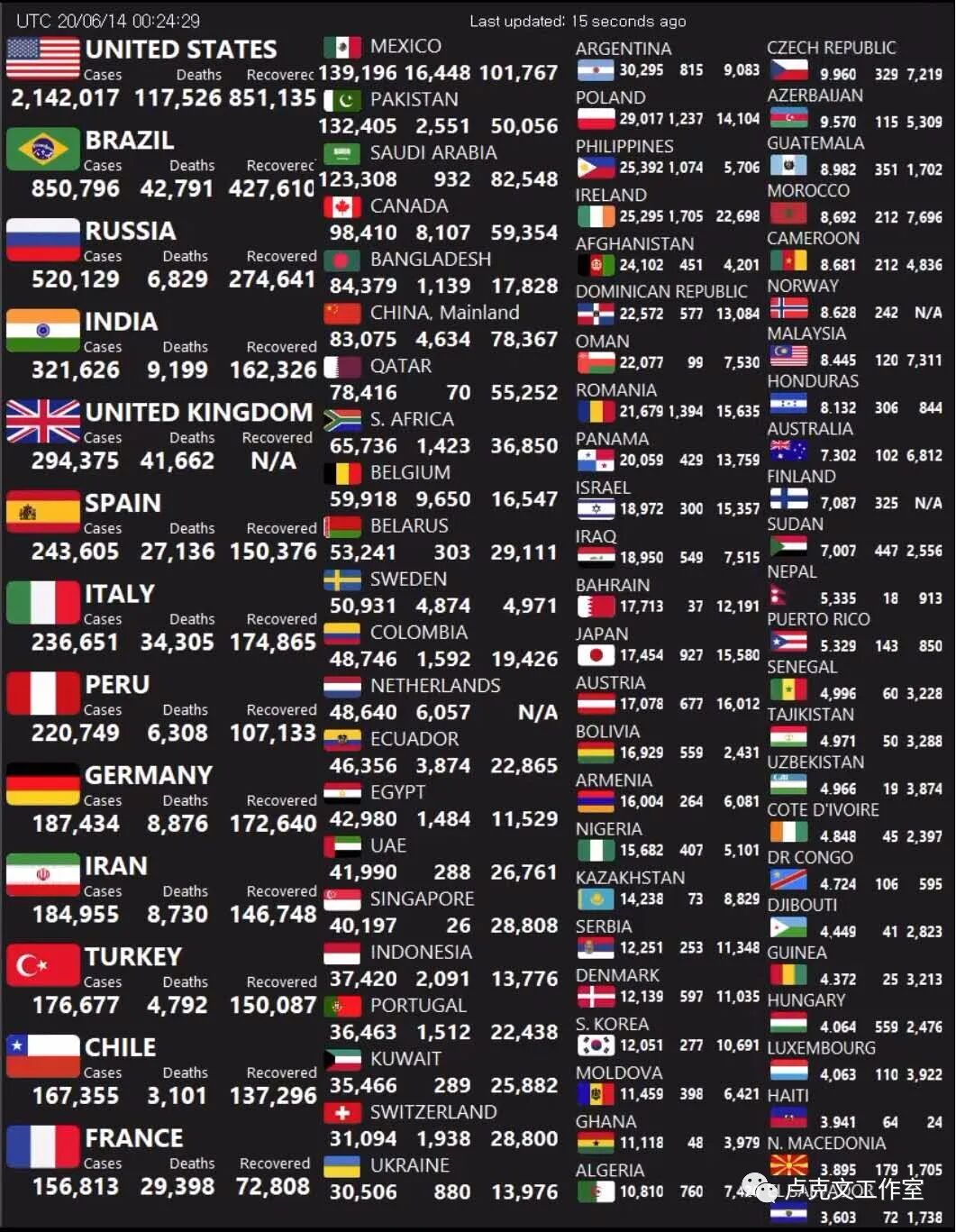 现在世界各国的疫情数据如下图: