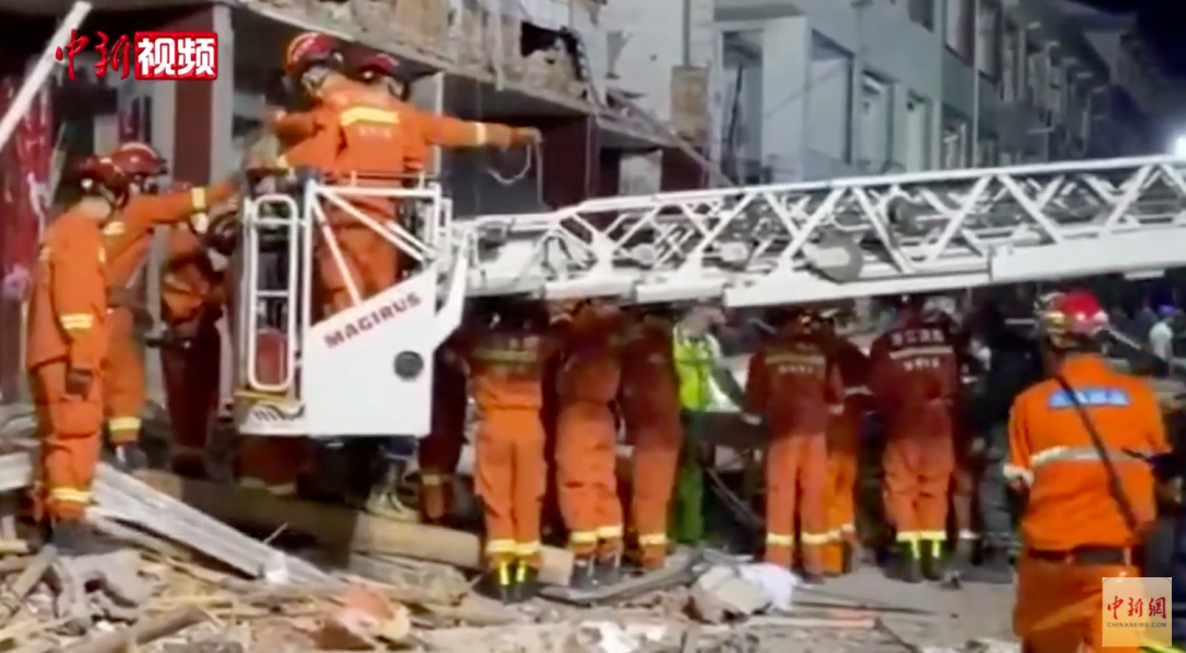 浙江温岭市液化石油气槽罐车爆炸事故救援现场。(图片来源:中新视频截屏)