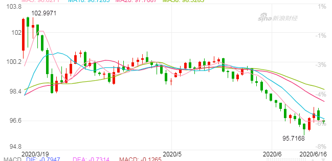 从疫情在美国大爆发至今,美元指数从103的高点,跌落到95的低点。