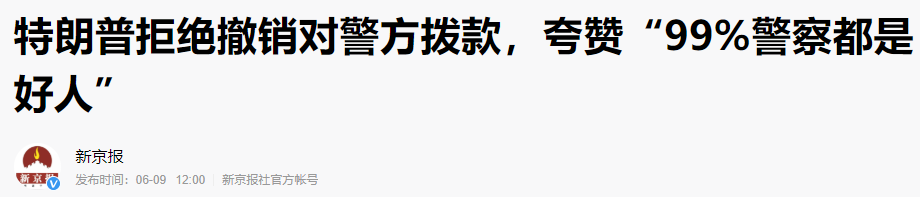特朗普站在共和党的立场上力挺警察,民主党则唯恐天下不乱,要求停止向警察拨款。