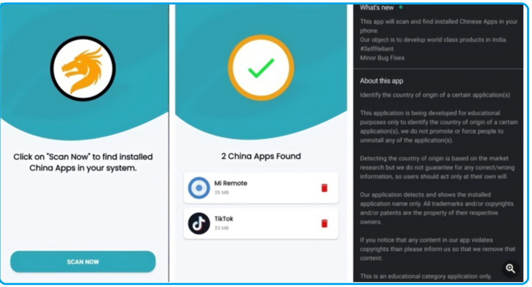 美国谷歌热门推荐“一键删除中国APP”软件在印度散播,助力煽动印度仇华情绪。