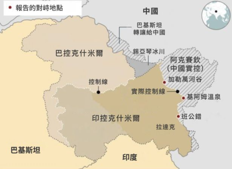 目前中国控制了阿克赛钦,在班公错的北岸与什约克河口和拉达克印军对持,藏南地区在印度控制下,阿克赛钦这个地方极为重要,中国目前占住了加勒万河河谷的入口,居高临下,这个地方地势很好。不过由于新疆本来距离中国经济中心比较远,所以中国在人数方面劣势。